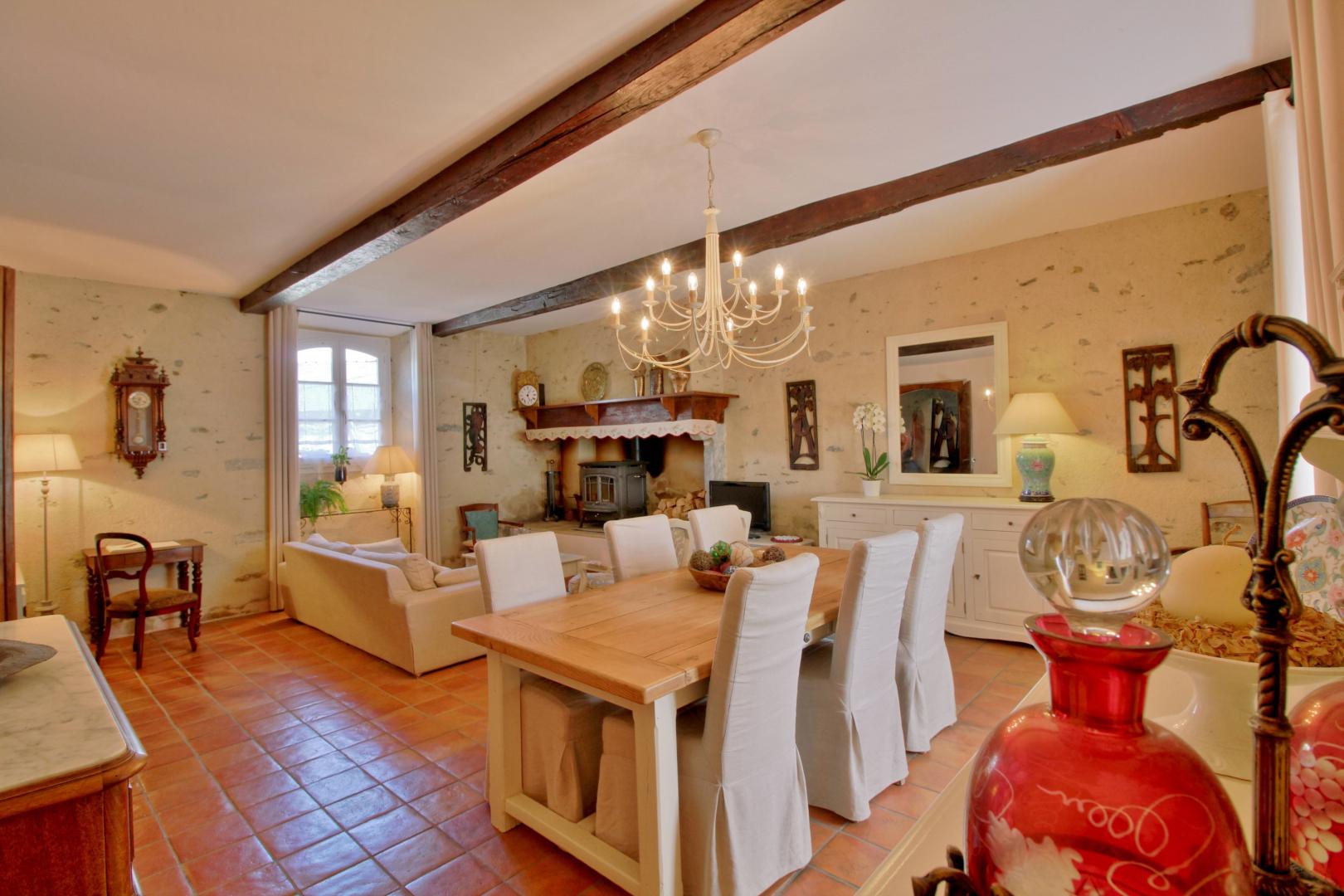 Autrefois pièce à vivre de la ferme, le salon et sa grande cheminée vous attendent pour vos moments de détente au coin du feu. A votre disposition, TV, jeux de société, bibliothèque, cartes IGN et autres documentations utiles. L’accès internet WIFI est également disponible et gratuit dans la maison.